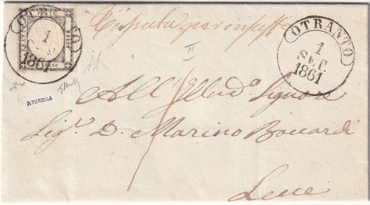 1 gr. isolato ben marginato su sovracorperta da Otranto x Lecce pluriperiziata – Sassone n.19