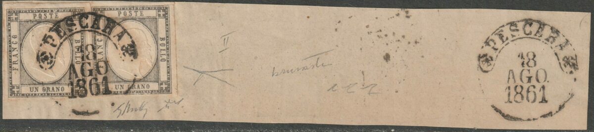 HomeFrancobolliAntichi StatiProvince Napoletane1+1 gr. Sass.19 VAR rara tinta non catalogata f.Chiav, Bott