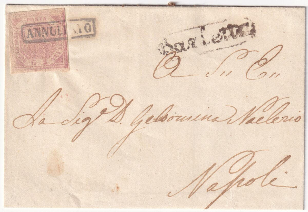 1858 17 Ott 2 gr. Sass 5a ben marginato su sovr. da Barletta ovale nero Non Quotato x Napoli