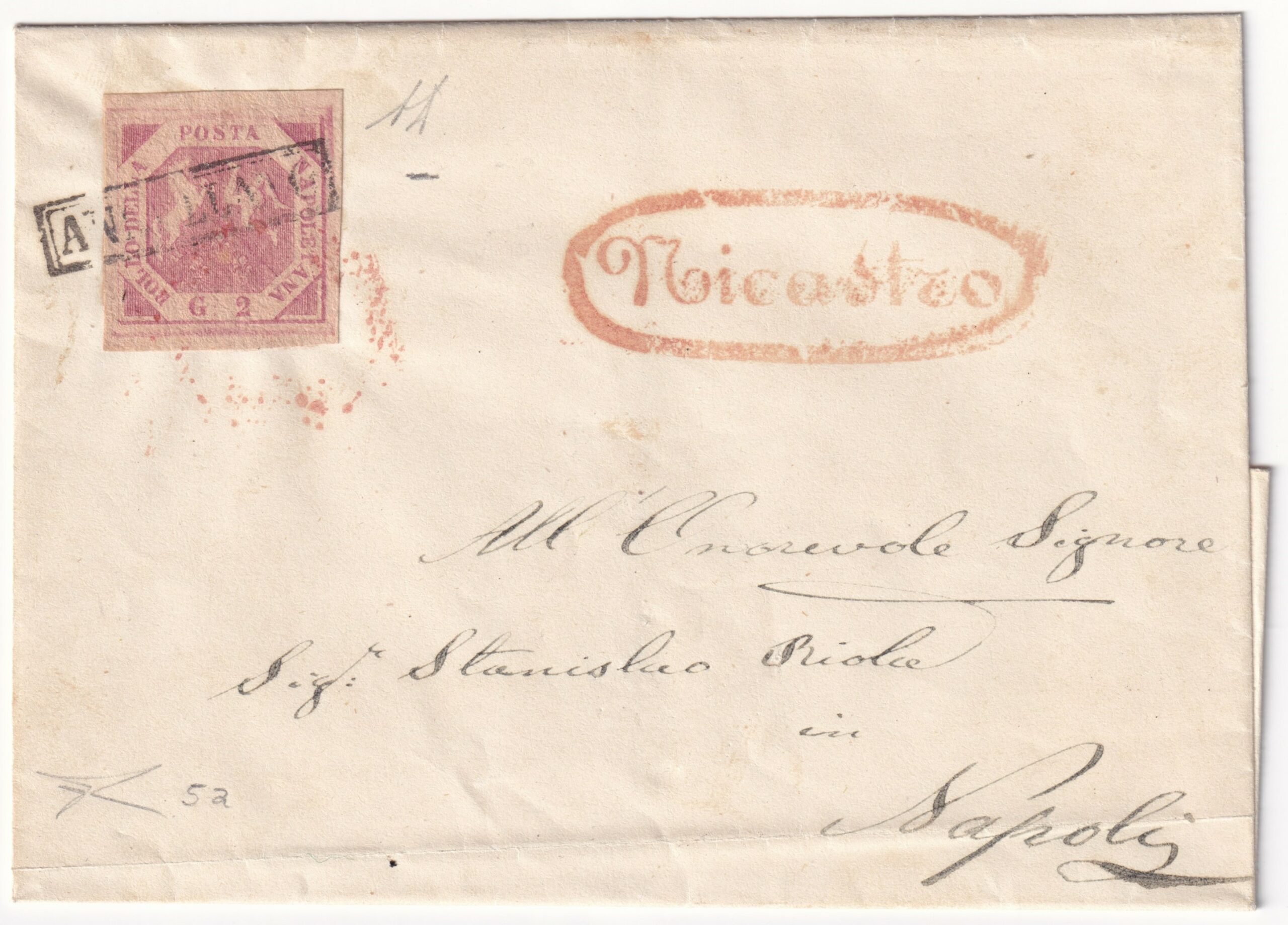 1858 30 Set 2 gr. Sass 5d grandi margini su sovr. da Nicastro x Napoli f.AD. Bott Lusso