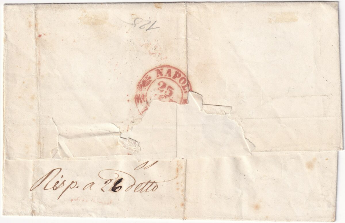 HomeStoria PostaleAntichi StatiNapoli1860 25 Gen 5 gr. Doppia Incisione carta crema Sass 8e su sovr. da Cerignola x Napoli Insuff. f. Ray, Palermo rara
