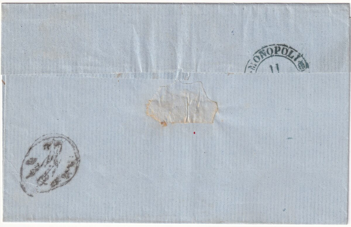 HomeStoria PostaleAntichi StatiProvince Napoletane1861 11 Ago 1 gr. + 1 gr. Sass 19a su sovr. da Conversano Pt.7 x Napoli f. ED, Chiav.