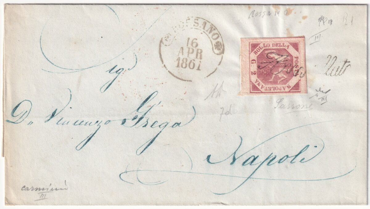 1861 16 Apr 2 gr. Sass 7f su sovr. da Rossano Svolazzo Pt.10 x Napoli f. Chiav., AD,Sass. Spl
