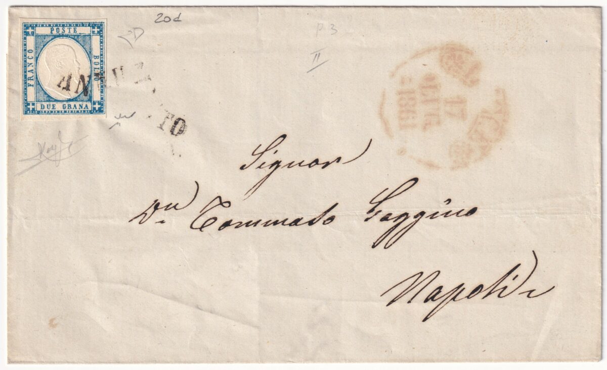 Napoli 2 gr. su sovracoperta annullato penna non quotato raro n.7