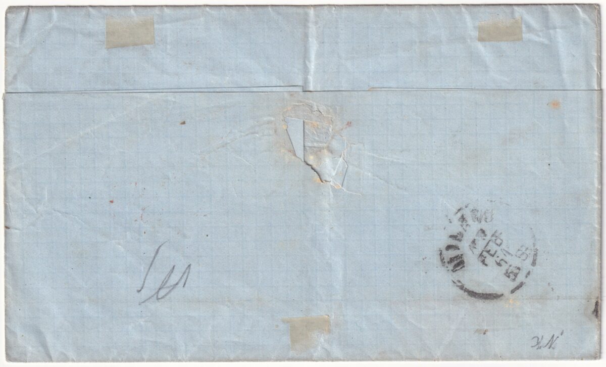 1861 9 Feb 5 gr. Filigrana Onda Sass9b su sovr. da Napoli x Milano f. Ferr rara