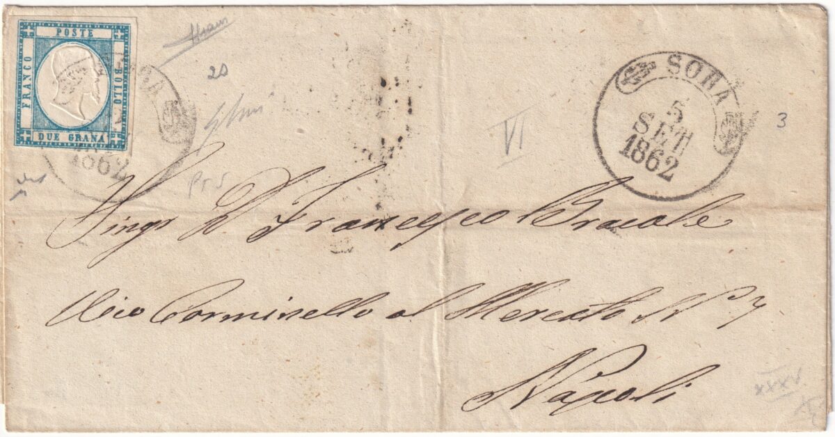 2 gr. ampi margini usato su lettera da Sora Pt.5 x Napoli pluriperiziata – Sassone n.20