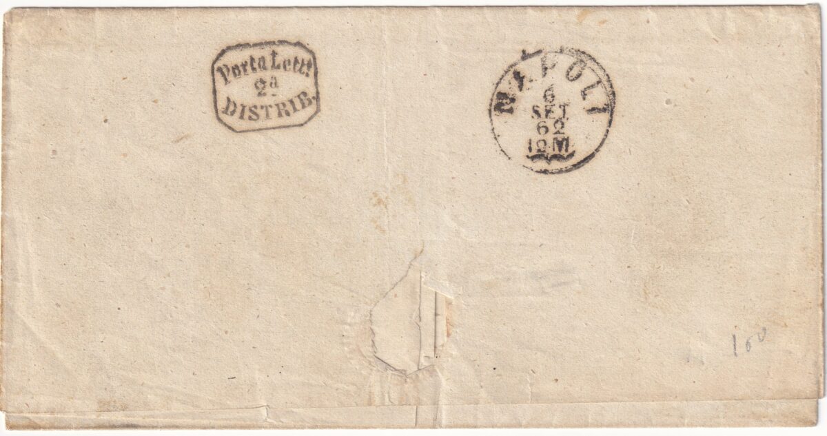 Province Napoletane 1861 – 2 gr. striscia verticale di 3 su lettera da Lecce x Napoli rara periziata – Sassone n.20b