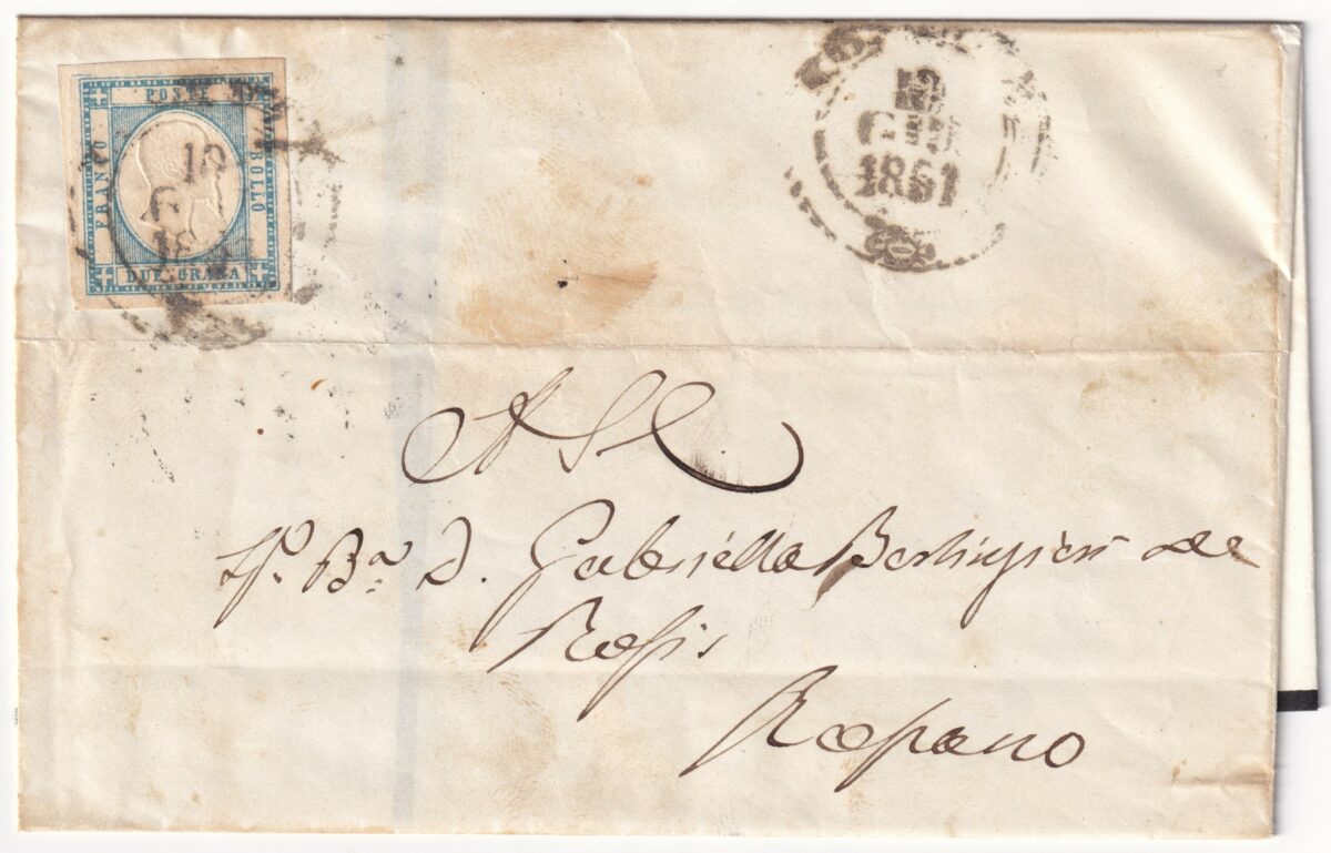 Province Napoletane 1861 – 2 gr. ampi margini usato su lettera da Eboli Pt.6 x Napoli periziata – Sassone n.20