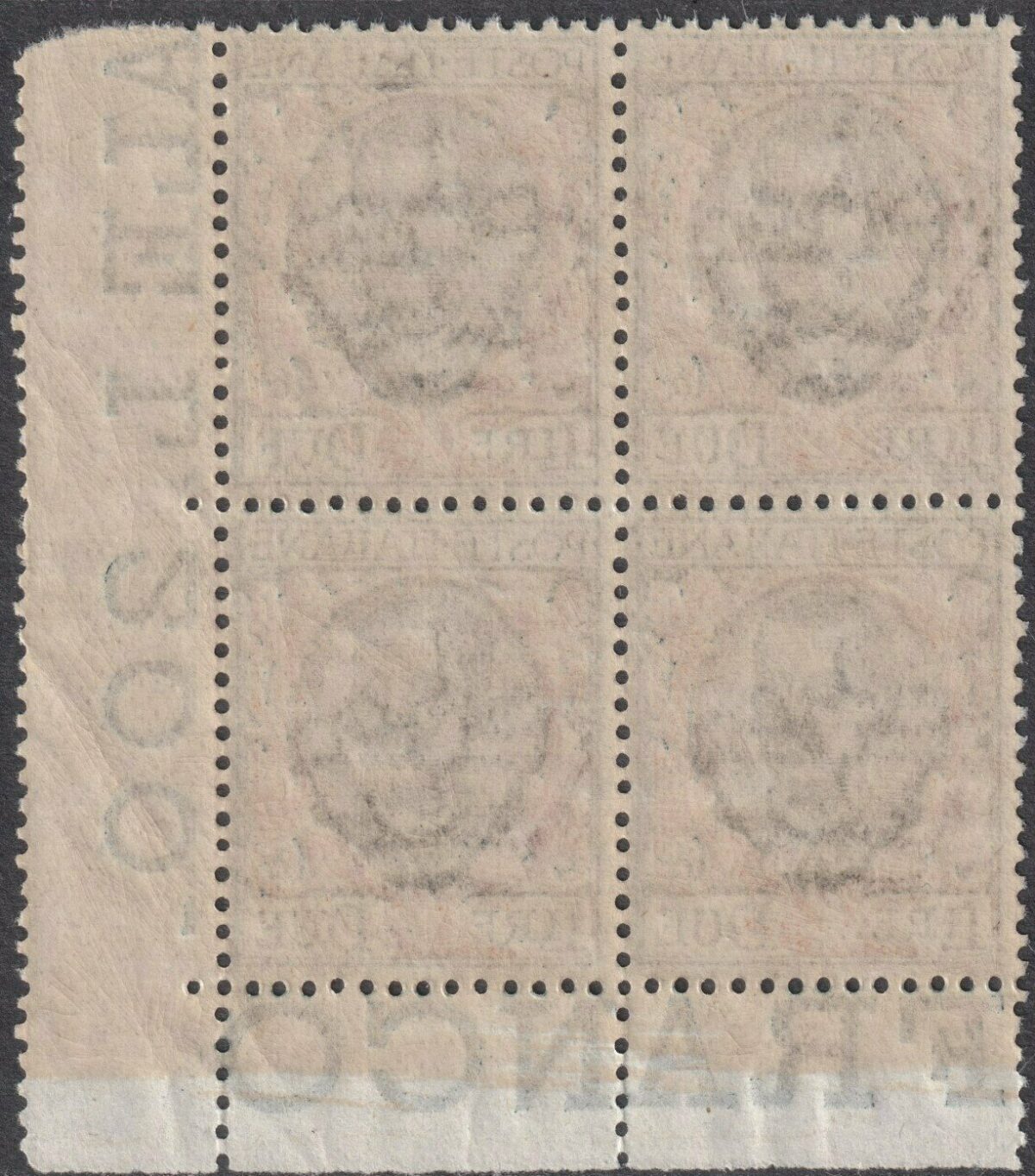 Regno D’Italia 1926 20 c. violetto bruno in quartina var. stampa parziale Sass. 204 MNH**