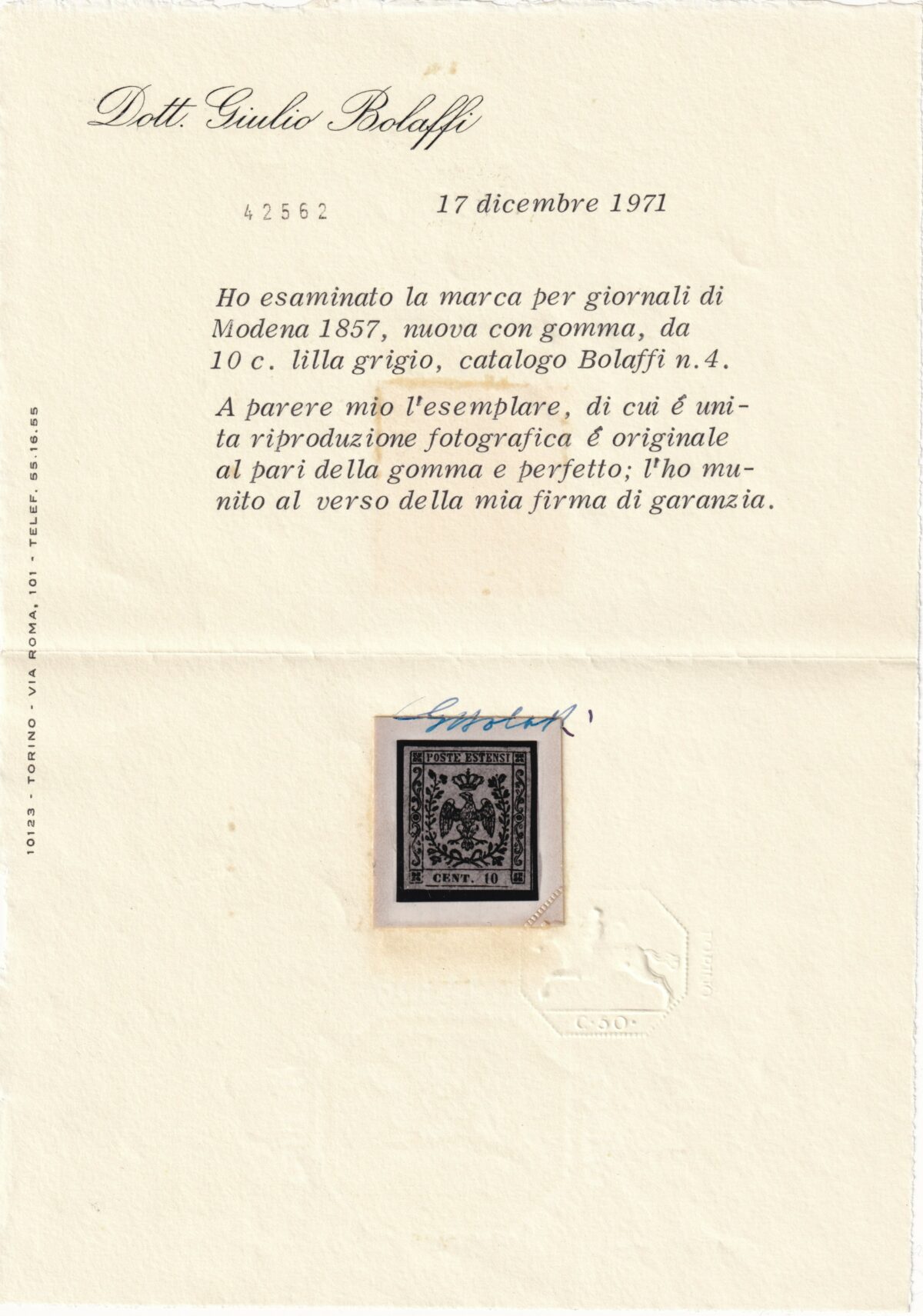 Giornali 9 c. + 10 c. Sass 3 MNH** f. G.Bolaffi + 4 MVLH* Cert. Giulio Bolaffi