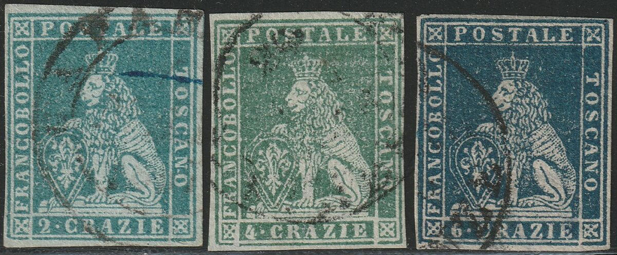 I^ Em. Serie di 3 valori dal 2 cr. al 6 cr. Sass 5/7 usati ben marginati Spl
