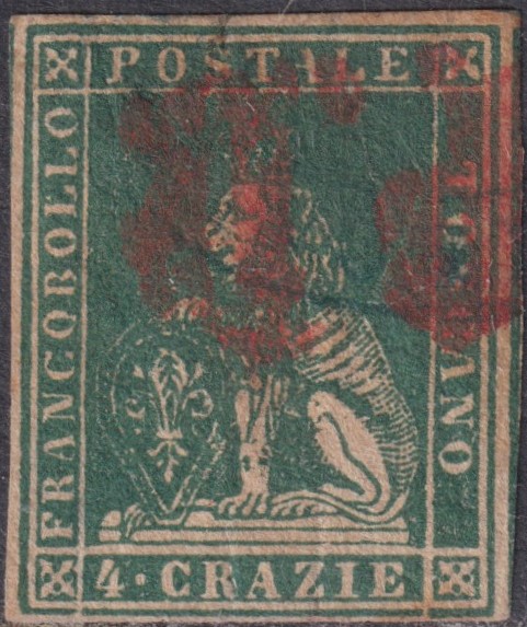 II^ Em. 4 cr. Sass 14 usato annullo PD rosso f. AD