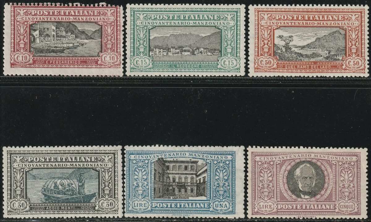 HomeFrancobolliRegnoRegno d'ItaliaManzoni Serie Completa integra rara Certificato – Sassone S.29