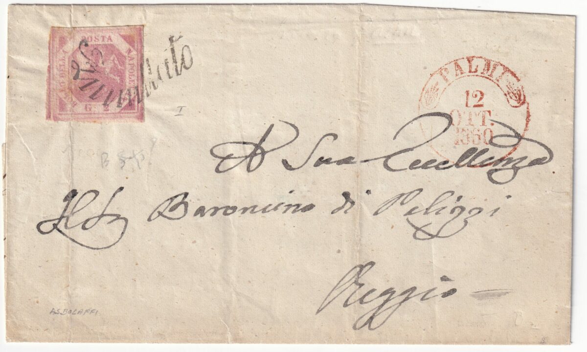 2 gr. I tav. piega su sovracoperta da Palmi Svolazzo Pt.9 x Reggio timbr. Bolaffi n.5c