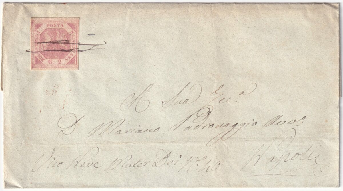 Napoli 2 gr. su sovracoperta annullato penna non quotato raro n.5