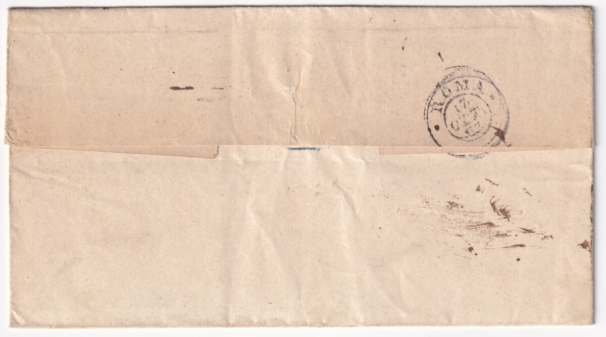HomeStoria PostaleAntichi StatiPontificioII Em 10 c. su sovracoperta da Corneto Pt.11 x Roma f.Chiav rara n.17