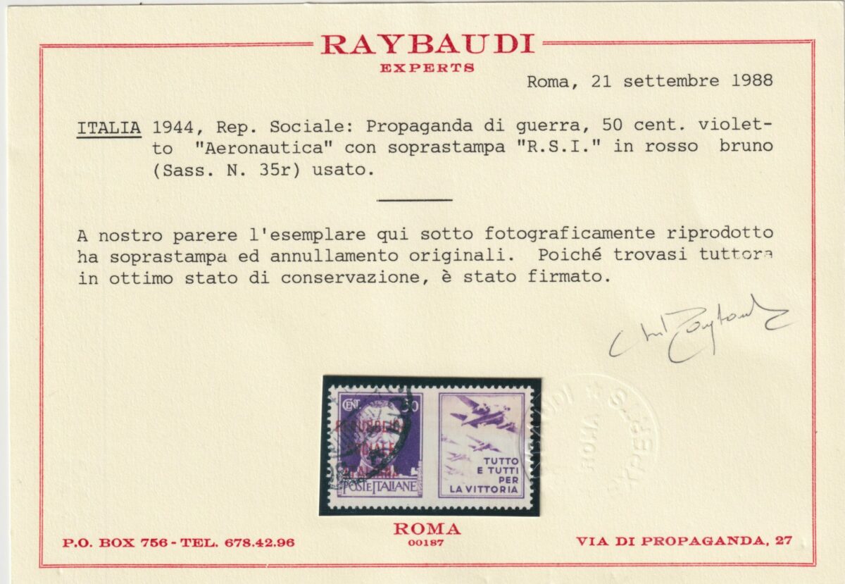 Repubblica Sociale 1944 50 c. violetto Sass. 35D Usato NQ Certificato Ray