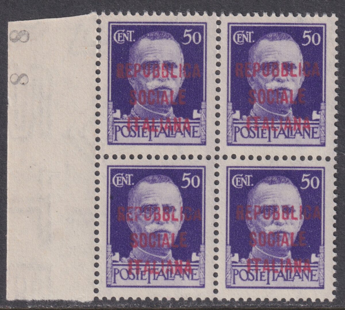 Repubblica Sociale 50 c. violetto in quartina Sass. 493E MNH** BDF Cv. 3600