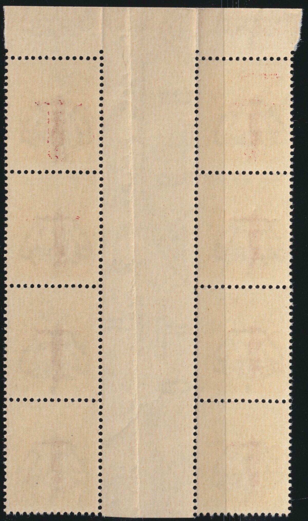 HomeFrancobolliRegnoRsi/Luogotenza/GnrRSI 1944 30 c. blocco di 8 con interspazio Sass. 492 a sx + 492E a dx Rarissimo MNH**