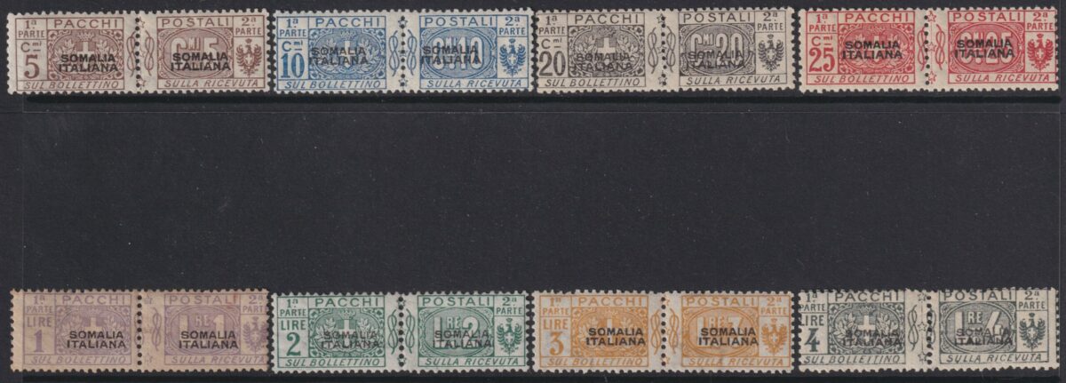 Somalia 1917 Serie di 8 valori Pacchi postali Sass. 1/4+6/9 MNH** firmati Cv 2440