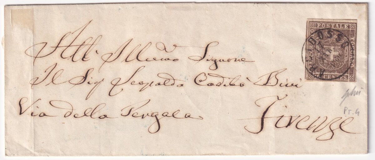 1860 17 Apr 10 c. Sass 19 su sovracoperta da Arcidosso Pt.4 x Firenze