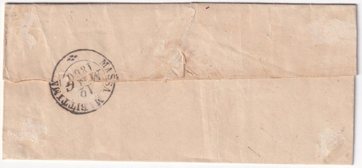 1860 17 Lug 10 c. Sass 19e ben marginato su sovracoperta da Serravezza Pt.5 x Colle